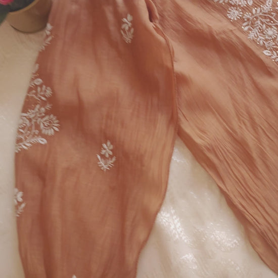 This semi-stitched Brown Chikankari Shirt is part of the designer collection and features authentic Lucknowi chikankari handwork.