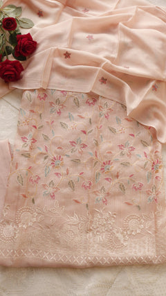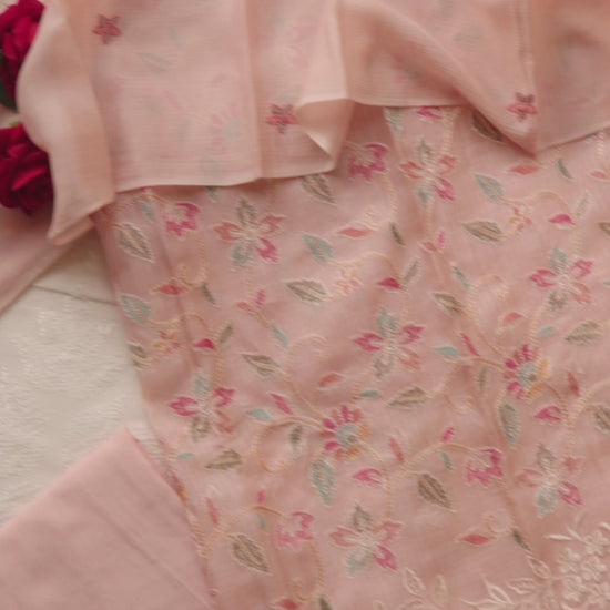 Pure kotta with floral Embroidery Elegant and classy looking dress material.