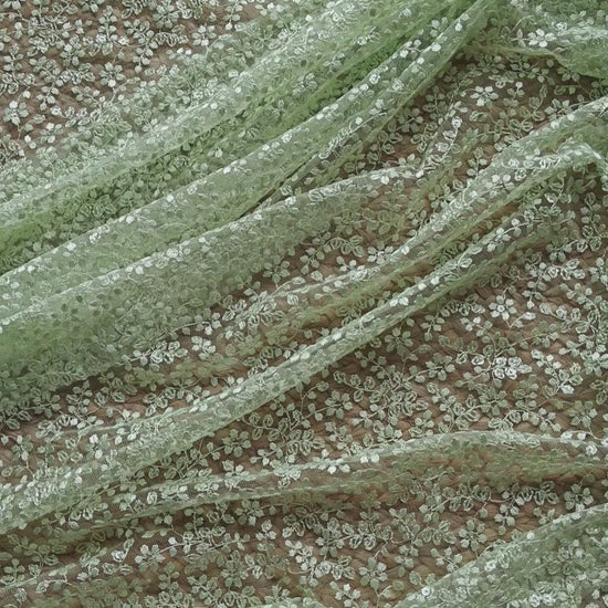 Green Net saree for tall 48 inch height. Indian net saree with thread embroidery