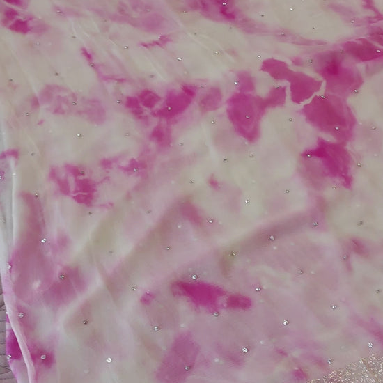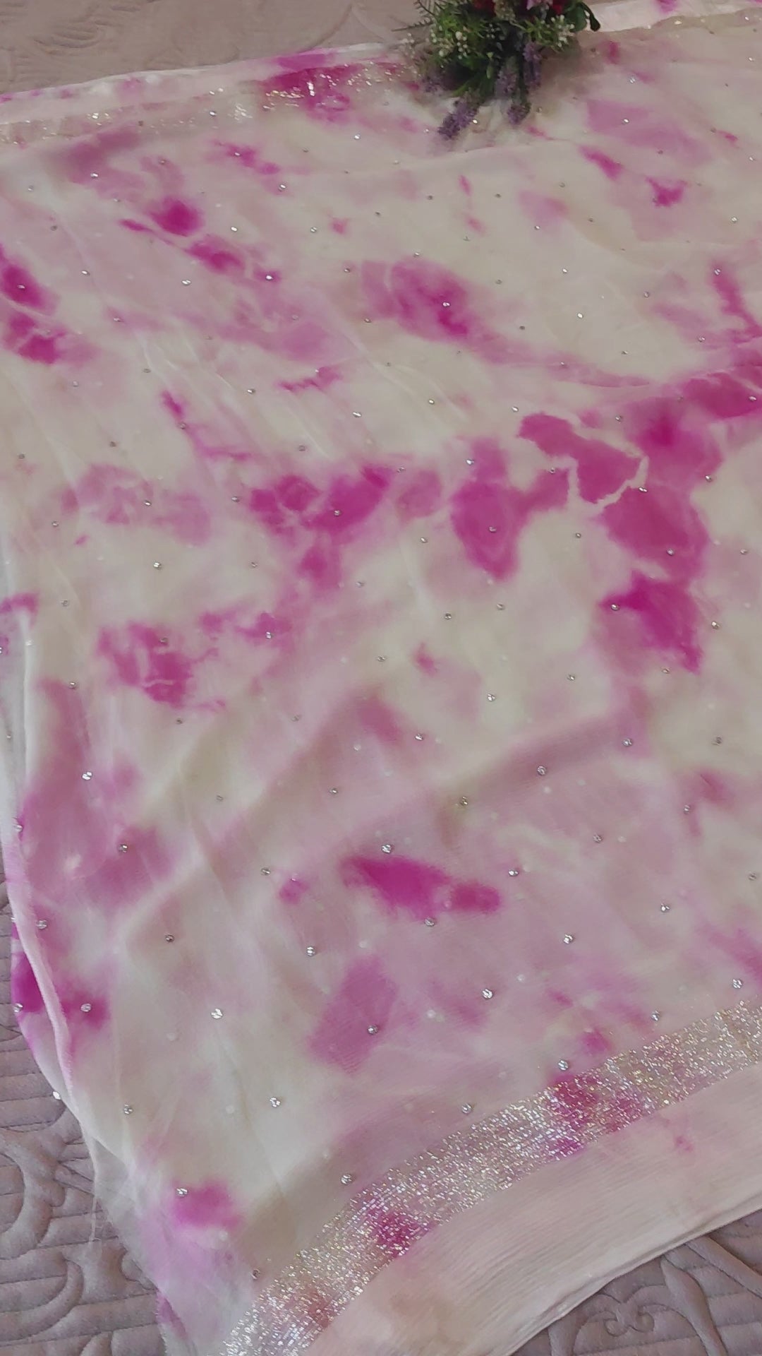 Beautiful shaded Pink off white saree in chiffon with silver zari border. This style makes you look amazing.
