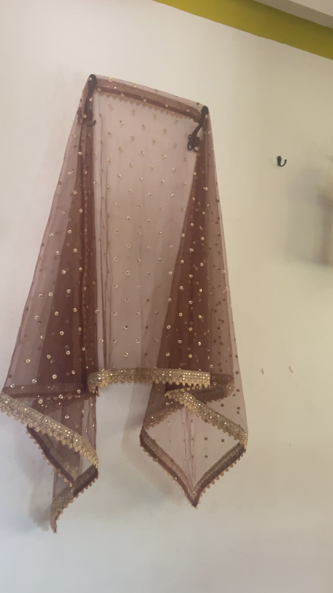 Brown Net Dupatta with Golden border.