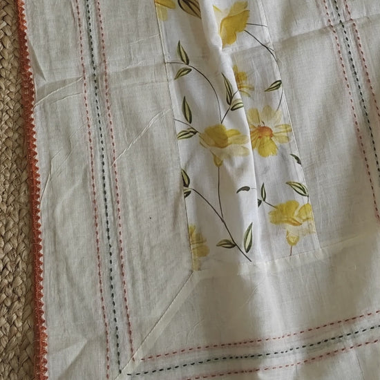 Cotton Printed Yellow Floral Kantha work Dupatta