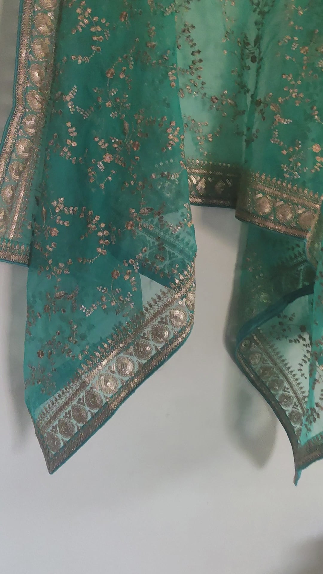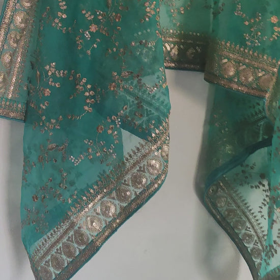 Ferozi Blue Sabyasachi Inspired Organza dupatta with sequins embroidery.