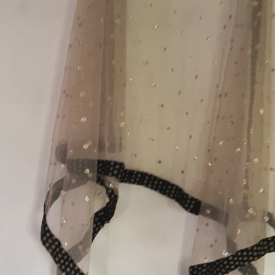 Golden Indian Net Dupatta party wear embroidered scarf | Punjabi dress dupattas with black gold border.