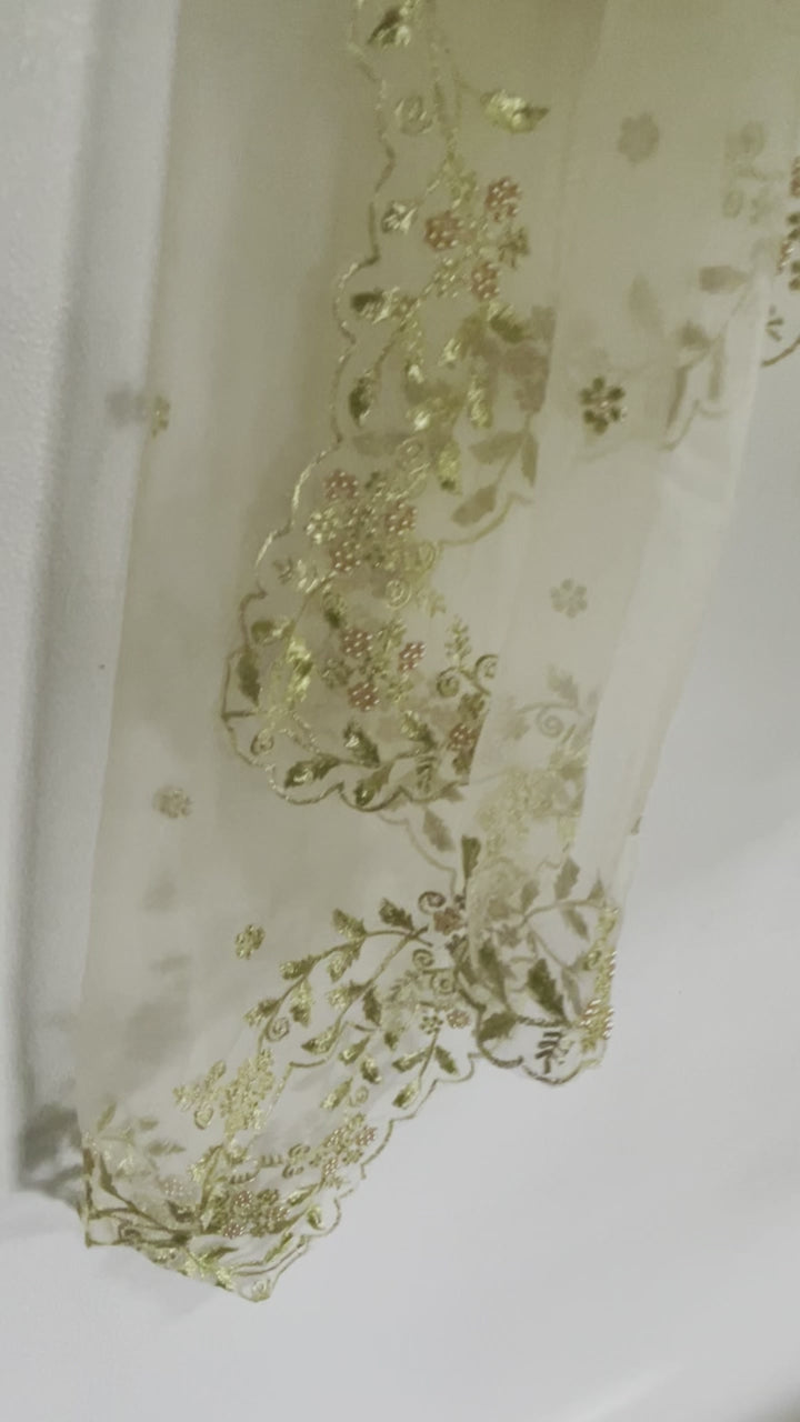 Light gold cream Net dupatta with scallop border