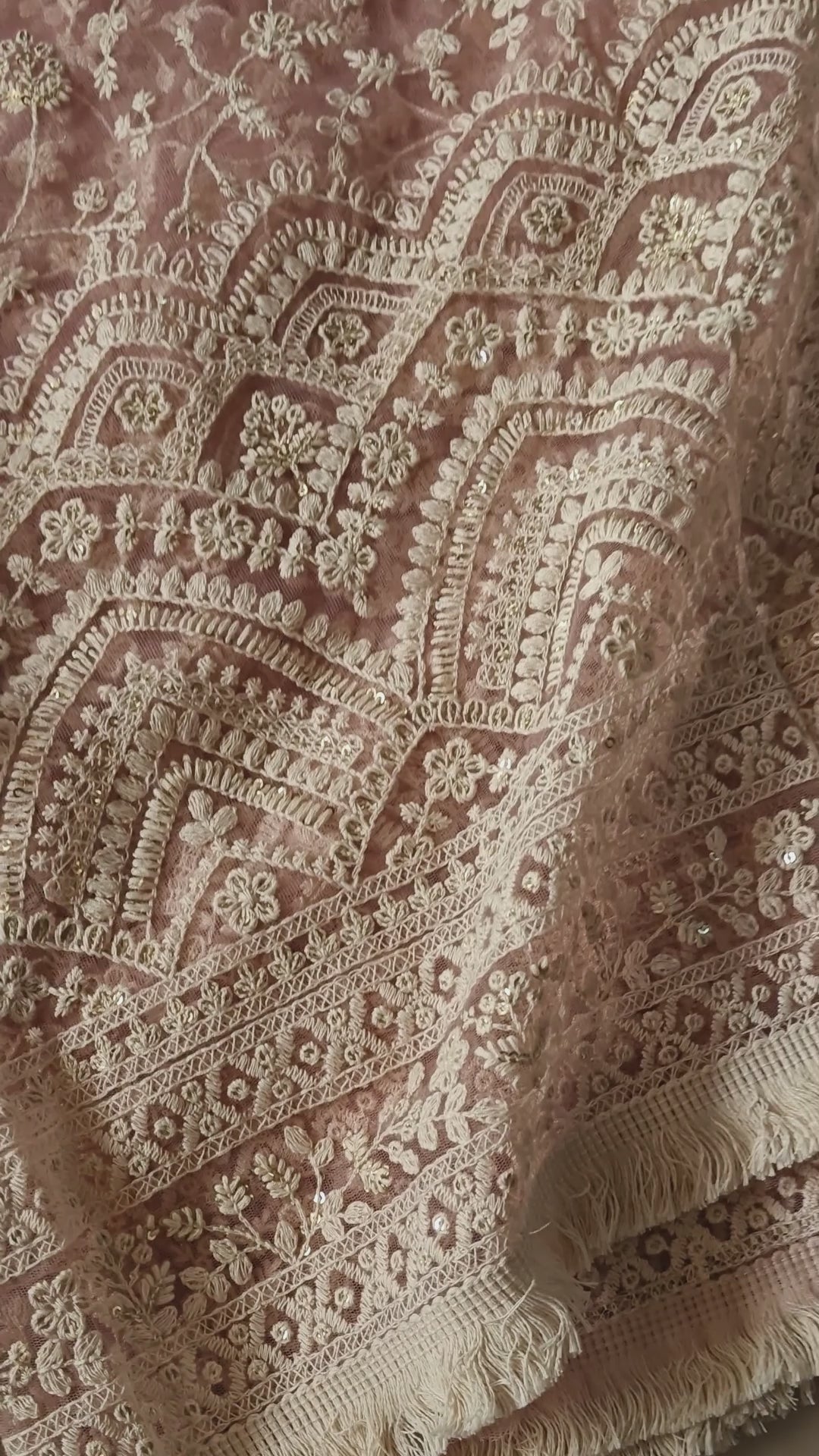 Lucknowi embroidery net dupatta with sequins work which lifts up the whole look.