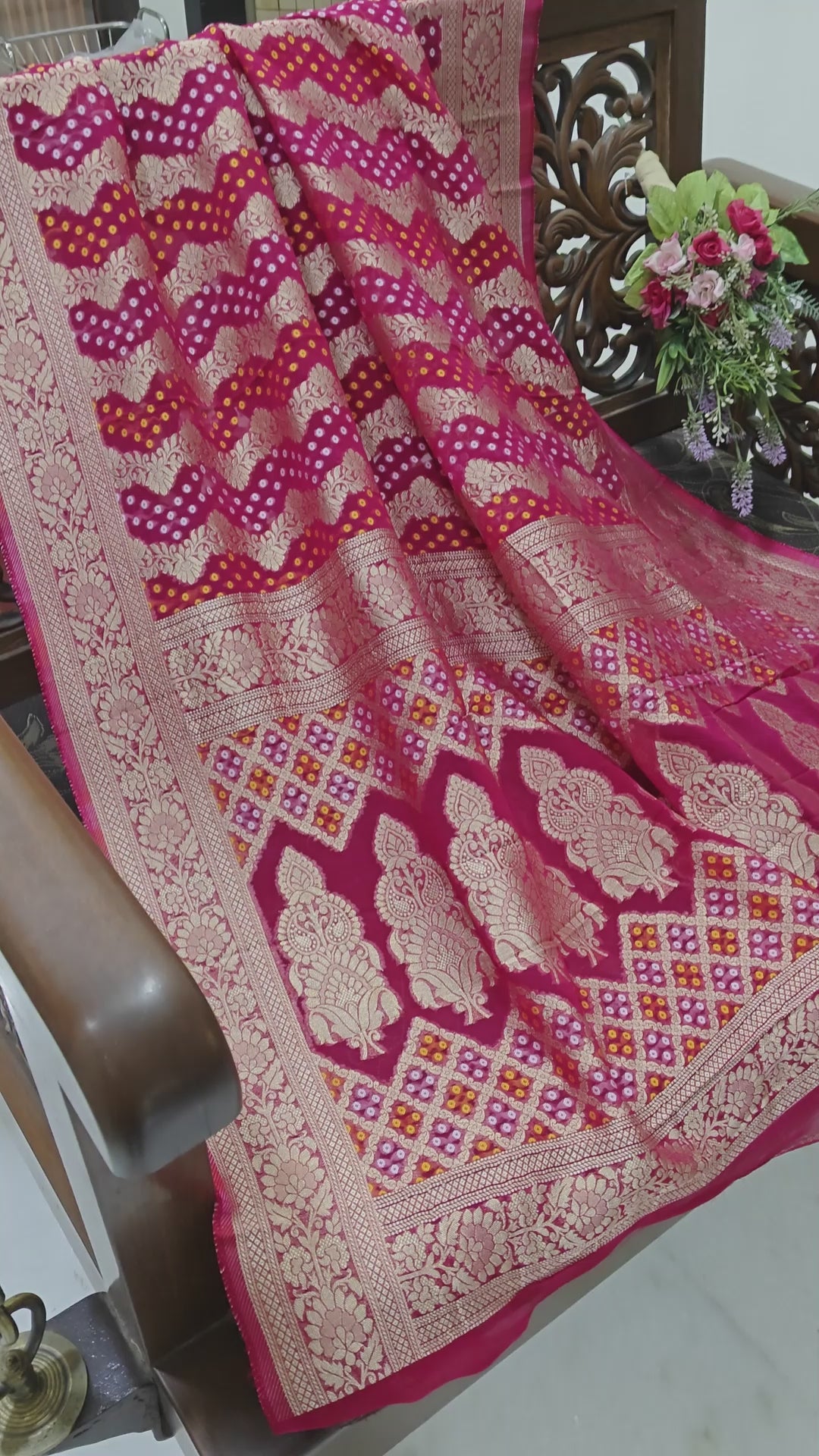 Pure Georgette Dupatta. Hot Pink Bridal Dupatta