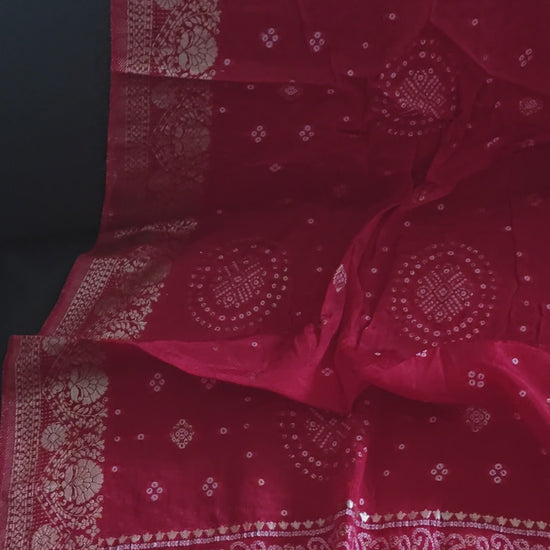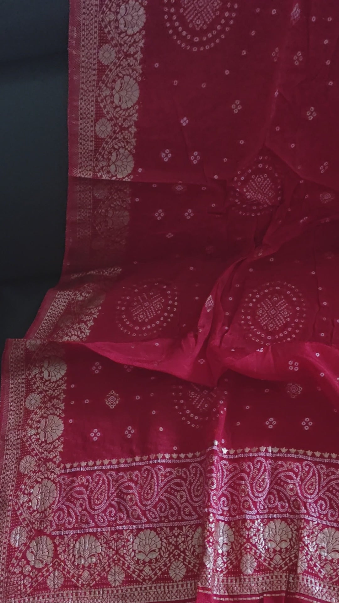Red Dupatta. Indian chunni on chinon fabric with bandhani print all over.