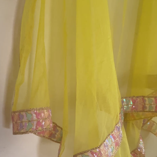 This Dupatta is sequin embroidered on net with beautiful golden border.