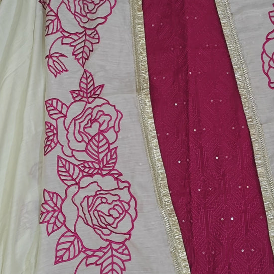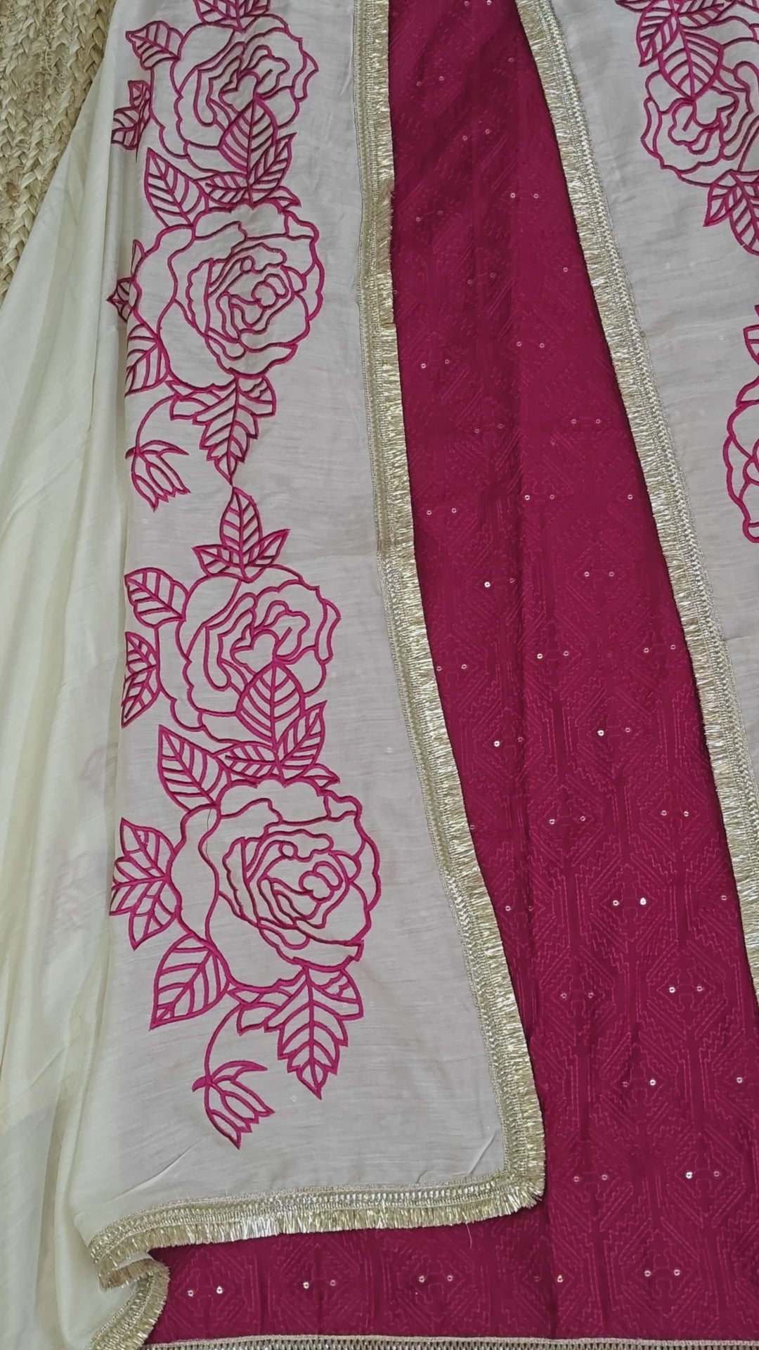 Beautiful Flower embroidery on dupatta with golden kiran lace and