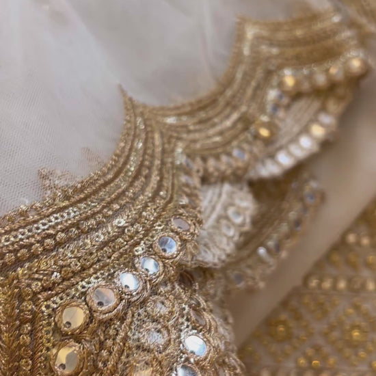 Georgette with beautiful big border Sabyasachi concept with net dupatta and scallop border embroidered.