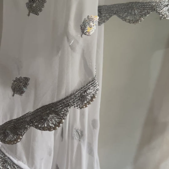 White Georgette dupatta with silver border and embroidery